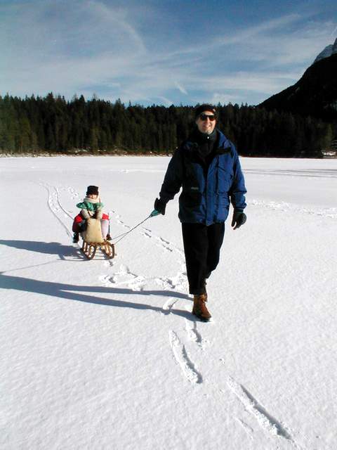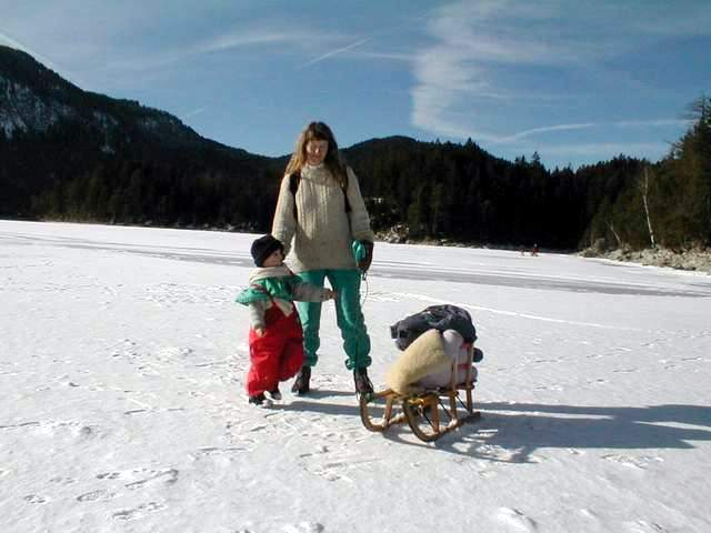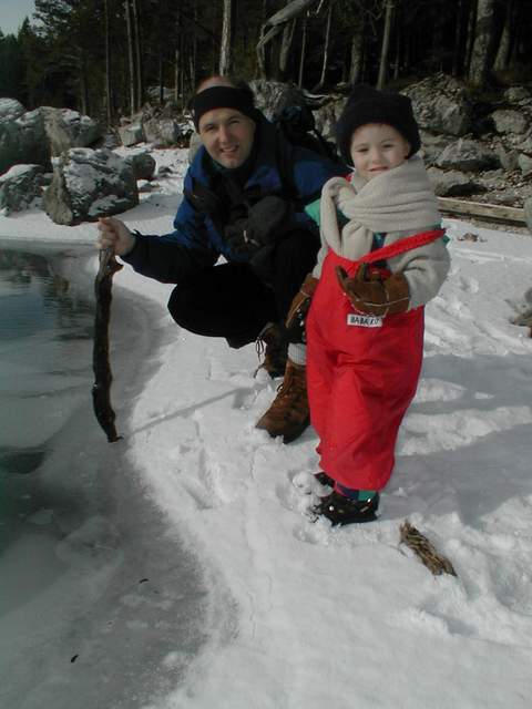 Der Eibsee ist zugefroren und wunderschön zu begehen.